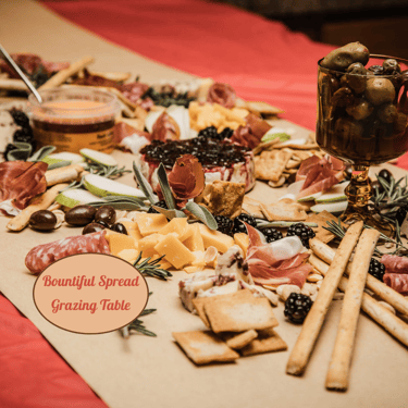 Grazing Tables: Create a visually stunning grazing table with an assortment of cheeses, cured meats, fresh fruits, nuts, and artisanal crackers. This takes inspiration from charcuterie boards but on a larger scale, providing a wide variety for guests to enjoy.